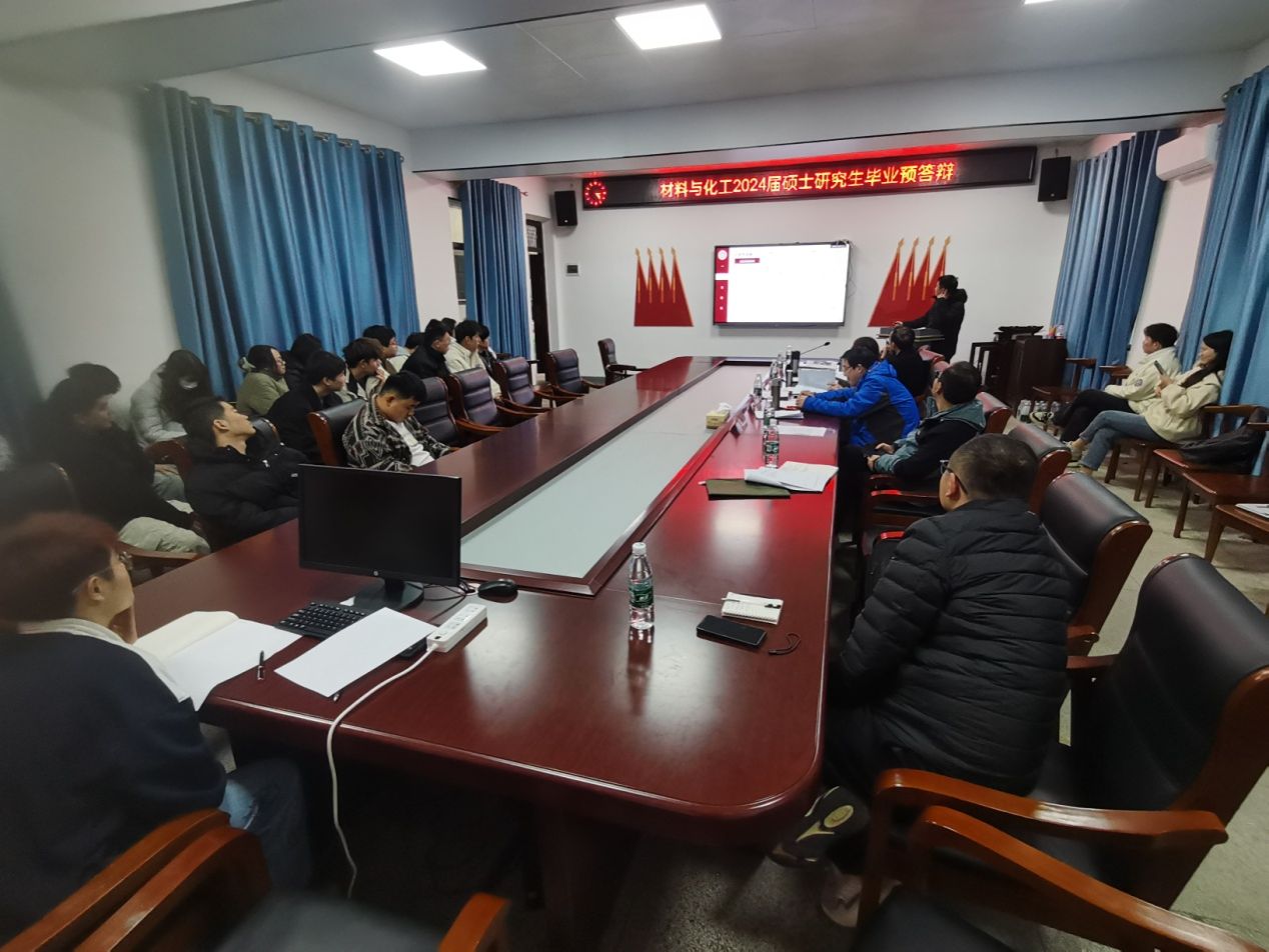 太阳成集团tyc122ccvip于2024年3月13日下午3点在化材楼105会议室举行2024届材料与化工硕士研究生学位论文预答辩。预答辩由许志锋教授、刘梦琴教授、陈满生教授、李俊华教授和孙俊彬副教授任评审小组专家,朱小明博士担任预答辩秘书。21级硕士研究生均参加预答辩,部分研究生导师、在读硕士研究生参与旁听。