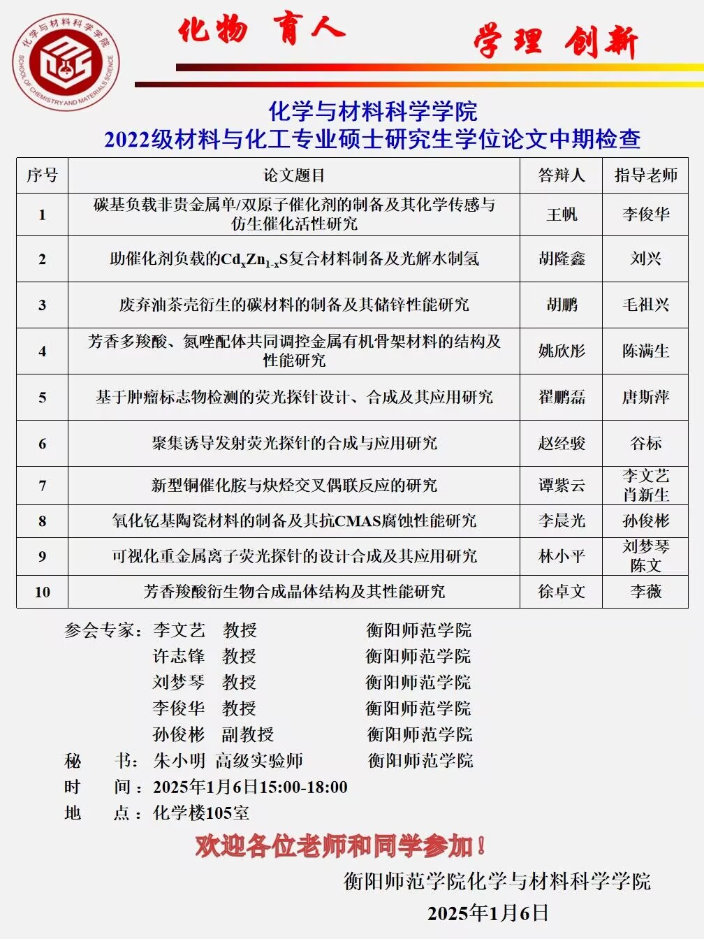 ​太阳成集团tyc122ccvip2022级材料与化工专业硕士研究生学位论文中期检查