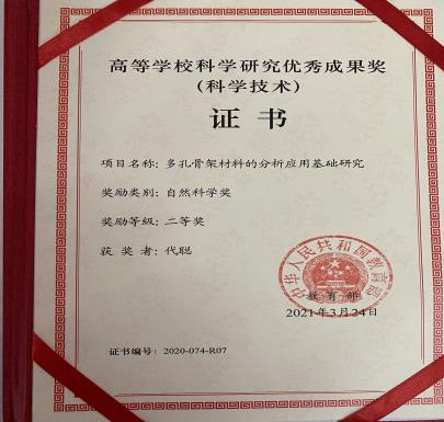 (3)Dai Cong, Qian Hai-Long, Yan Xiu-Ping. Facile Room Temperature Synthesis of Ultra-Small Sized Porous Organic Cages for Fluorescent Sensing of Copper Ion in Aqueous Solution [J]. Journal of Hazardous Materials, 2021, 416: 125860.