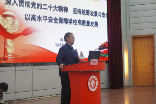 陈敏首先深刻阐述了当今严峻的国际形势,指出我们正处于向第二个百年奋斗目标的关键时期。为抵制外国敌对势力对我国的打压、保持我国的高速发展,我们必须坚持中国特色社会主义道路,积极学习党的二十大精神;在学什么这一方面,他重点阐述了二十大中的“统筹发展与安全”,强调“统筹发展与安全”的重要性,并结合国内近期发生的“内蒙古矿难事件”“长沙电信大楼火灾”“望城自建房倒塌”等惨重教训以及公司的具体案例,告诫我们在谋求发展的同时一定要保障安全,切实实践习近平总书记“人民至上”“生命至上”的重要指示精神,做好校园安全稳定工作;在怎么干这一方面,他借助二十大重要论述的实质、要义和精髓,结合公司实际情况,在意识形态领域、消防安全领域、食品安全领域、交通安全领域等方面深入分析了我们面临的风险、挑战和压力,提出了树牢一个理念、压实两个责任、守住三个底线、构建四个体系的具体思路及措施。