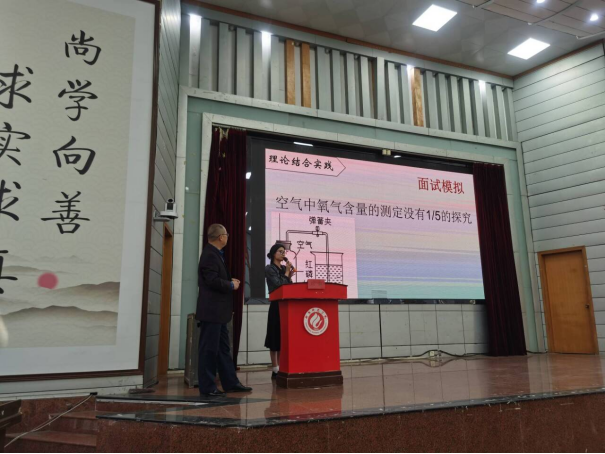 在讲课过程中,为了检验公司员工的专业知识的扎实程度和教学基本功,他选取了《空气中氧气含量的测定研究》这一高中录取教师的面试题目,随机抽取同学上台讲解。公司2020级03班的欧阳慧婷同学被选中,她从中员工已经掌握了气压这一概念出发,详述实验操作规范要点,分析了错误操作可能会导致的气压变化以及仪器本身的组成部分阐释了水倒流会少于或多于1/5的原因。该同学临场发挥镇定自如,讲解仔细认真,富有启发性,收获了阵阵掌声。