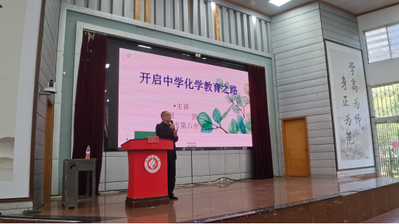 衡阳市第六中学的刘剑老师首先开讲,他提出了“听十堂课不如讲一堂课,讲十堂课不如评一堂课”的观点,从仪表教态、导入新课、语言表达、重难点讲练、多媒体辅助、教学方法、课堂气氛、员工状态、板书布局、时间分布十个方面向公司师生细致阐述了他在28年化学教员工涯中的感悟与所得