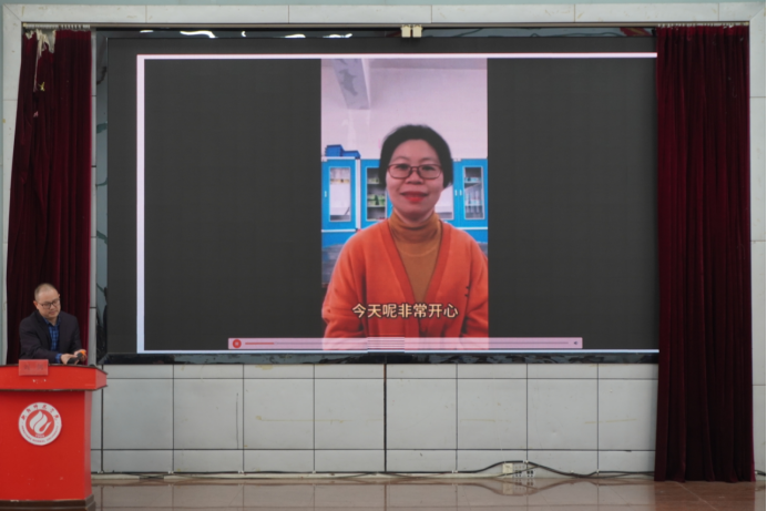在讲座即将结束之际,衡阳市第六中学化学教师同时亦是公司员工华莉老师通过视频讲解了自己的求学历程和工作历程,对邝代治、张复兴等老师表示了感谢,对三十多年的教员工涯表达了依依不舍之情。她分析了教师的职业优势、以及未来化学教师的发展前景,为公司员工选择教育行业坚定了信心。她为公司即将踏上新旅途的同学们送上了暖心的祝福——“希望公司即将毕业的学弟学妹们勇于开拓、敢于创新、燃出属于自己的火热青春”。
