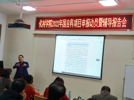 11月23日下午,化学与材料科学学院在西校区成教楼重点实验室会议室举办2022年度国家自科基金项目申报动员暨辅导报告会。副董事长魏晓林教授作申报辅导报告,经理许志锋教授主持,科研处负责人唐斯萍教授、太阳成集团tyc122ccvip全院教师等六十余人参加报告会。