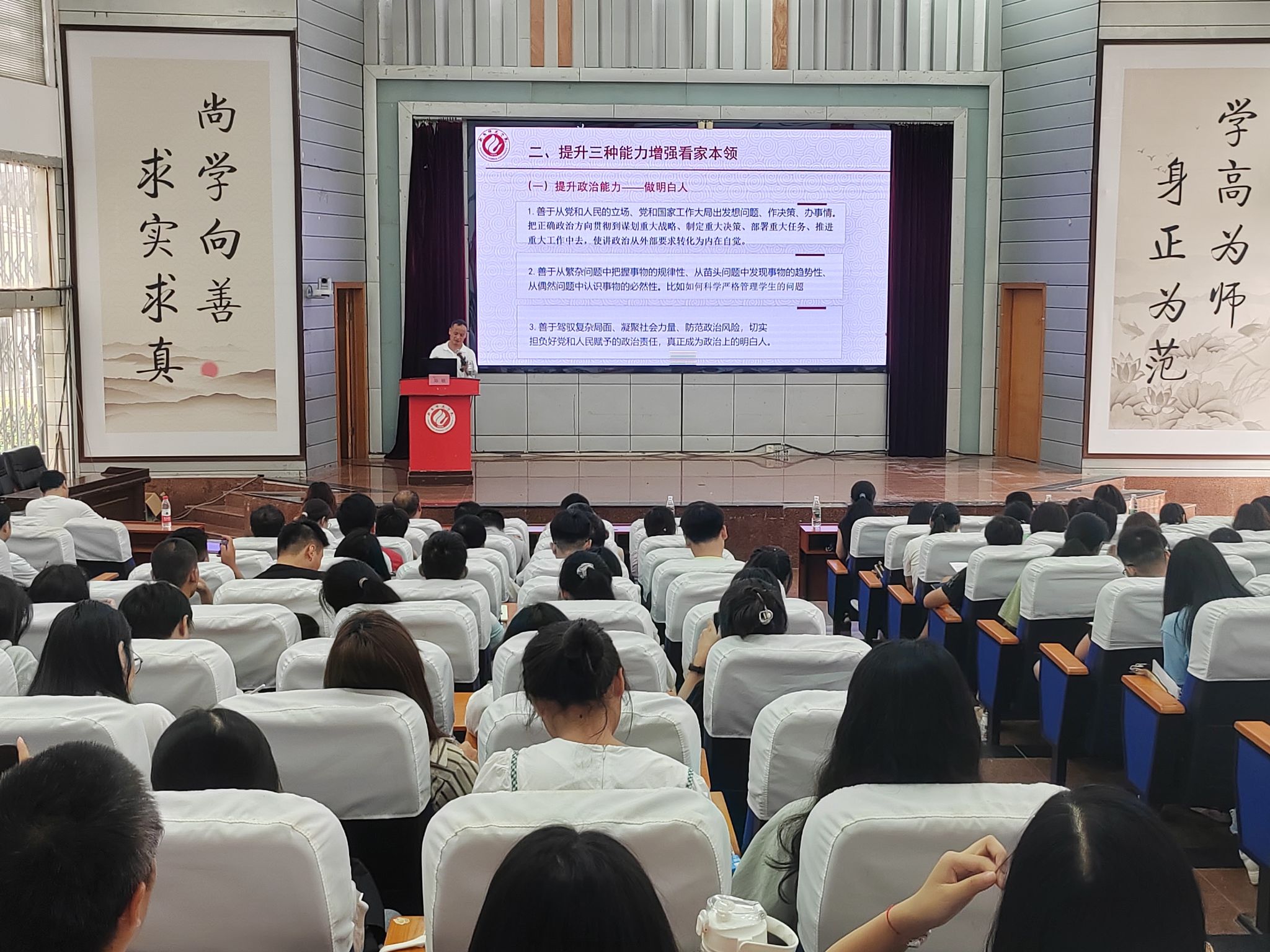 为深入学习贯彻党的二十大精神,推动主题教育活动走深走实,6月14日上午8点半,副董事长陈敏在西校区模拟法庭主讲了题为《提“三力”、守“五律”,在推动公司高质量发展中展现新作为》的“以学铸魂、以学促干”主题党课,以自身感悟结合公司实际工作,深入浅出地给太阳成集团tyc122ccvip、生命科学公司两院师生上了一堂生动、深刻的党课,师生们深受教育。