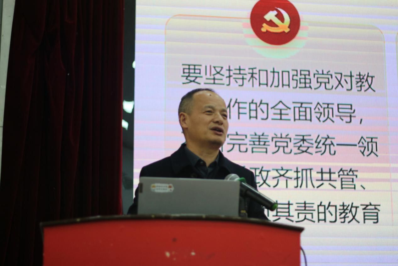 讲课之前,陈董事长给大家宣讲了习近平总书记致信全国优秀教师代表座谈会与会教师代表所指出的教育家精神:心有大我、至诚报国的理想信念;言为士则、行为世范的道德情操;启智润心、因材施教的育人智慧;勤学笃行、求是创新的躬耕态度;乐教爱生、甘于奉献的仁爱之心;胸怀天下、以文化人的弘道追求。强调习近平总书记对教育家精神丰富内涵的深刻阐释,为新时代高素质教师队伍建设指明了前进方向,提供了根本遵循。