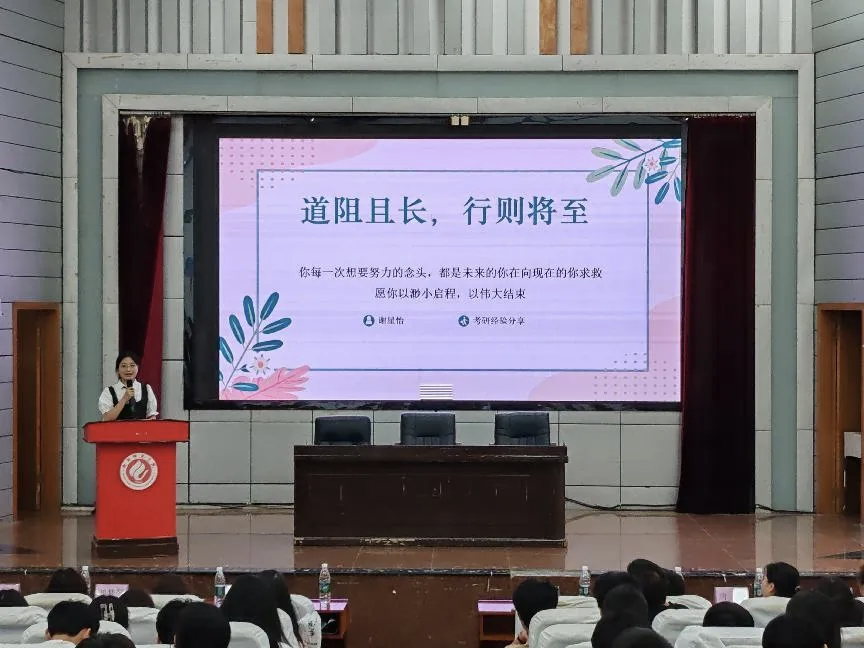 交流会上,四位2025届优秀毕业生陶诗源、欧佳妮、谢星怡、周永康倾囊相授。他们结合自身考研历程,从备考经验、资料筛选、学习方法等维度展开分享,紧扣考试大纲与录取院校情况,深入剖析考研择校要点,并给出切实可行的建议。在场同学认真聆听,收获颇丰。
