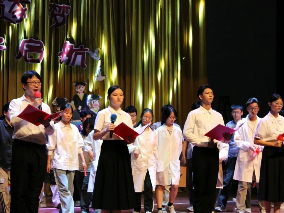刘梦琴书记的致辞温润如缓冲溶液,却藏着催化剂般的力量——她细数课堂与实验室的成长片段,叮嘱同学们带着“格物致知”的热忱踏上新程,话语如恒温箱里的暖流,为这场仪式注入沉稳而蓬勃的能量。