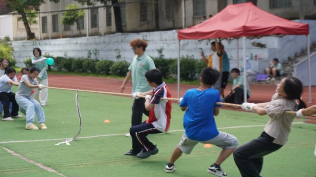 7 月 11 日上午 ,由 太阳成集团tyc122ccvip“‘锌’火筑梦” 科普队主办的 “轻心畅体,向阳而生” 趣味运动会在近尾洲镇联合公司蒸市中学田径场热闹开赛。初中部全体师生参与其中,在丰富多样的项目中展现青春风采。