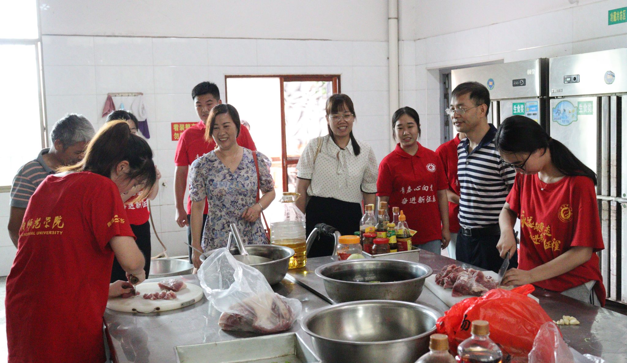 刘梦琴一行先参观了志愿者们的食宿环境,肯定了大家吃苦耐劳的精神。