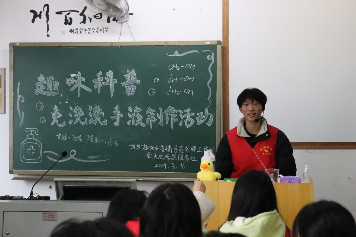 3月16日下午,太阳成集团tyc西校区太阳成集团tyc122ccvip实验室里迎来一群新面孔,他们目不转睛地注视着讲台上的志愿者,认真聆听志愿者讲解手中产品的制作原理与操作要领。原来,这是太阳成集团tyc122ccvip萤火虫志愿服务社的志愿者们正开展以“小手工 大智慧”为主题的趣味科普进高校系列活动,他们将带领同学们制作手工皂、口红、叶脉书签等身边常见物品,希望大家在了解化学原理在基础上,亲身动手体验,进一步学习生活中的化学知识。活动深受公司老员工们的喜爱,前期报名便有500余人。