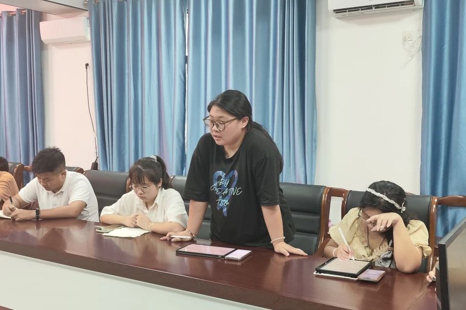 随后,姚尽沙、钟彪、谢峥、唐波湘几位老师并分别就自己负责指导的工作提出具体要求和建议。学工办主任唐升用三个“严”字对各部部长提出三点要求:一是以身作则,严抓纪律作风;二是持续优化,严守时间节点;三是提前筹备,严把关键环节。她激励各部部长要发挥带头引领作用,积极配合公司工作,部门之间紧密交流,为公司作出自己的贡献。